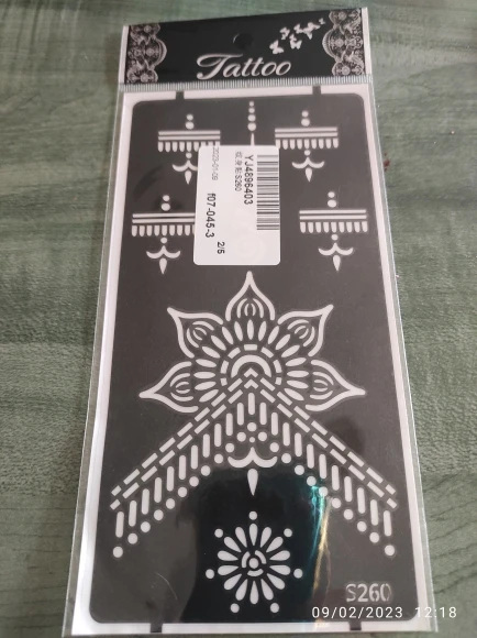 100% новый и высокое качествоТип: тату наклейка на руку трафаретыМатериал: ПВХРазмеры: 18,5*9,5 см;Нетоксичный и безопасный, простой в использованииИдеально подходит для использования вручнуюПодходит для пляжа, Вечерние прогулки, свадьбы и т. д.Посылка включает в себя:1 предмет татуировки наклейки-трафаретыКак использовать:1. Мыть кожу с мылом, сухой кожей.2. Рив трафарет татуировки, наклейте на кожу.3. Защитная пленка Rive.4. Нарежьте татуировку хны на верхнюю часть 3-5 мм.5. Хна тату паста на трафарете выдалбливают из места.6. Подождите 30-60 минут, ожидая затвердевания тату-пасты.7. Трафарет для тату, прозрачная паста, конечный результат.(1 дюйм = 25,4 мм или 1 мм = 0,0393 дюйма)Примечание:1. Допускается погрешность в 2-3% из-за ручного измерения. Пожалуйста, убедитесь, что вы не возражаете, прежде чем сделать ставку.2. Цвета могут отличаться, так как на дисплее разница, пожалуйста, поймите.