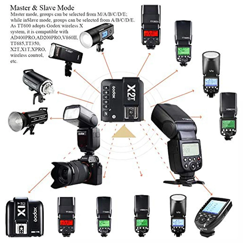 Godox TT600 2,4G Беспроводная камера Вспышка Speedlite + X2T передатчик Беспроводная вспышка триггер для Canon Nikon Fujifilm Sony Olympus
