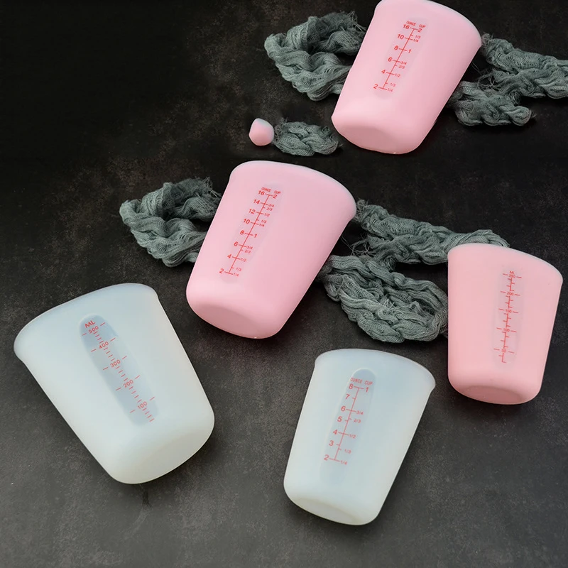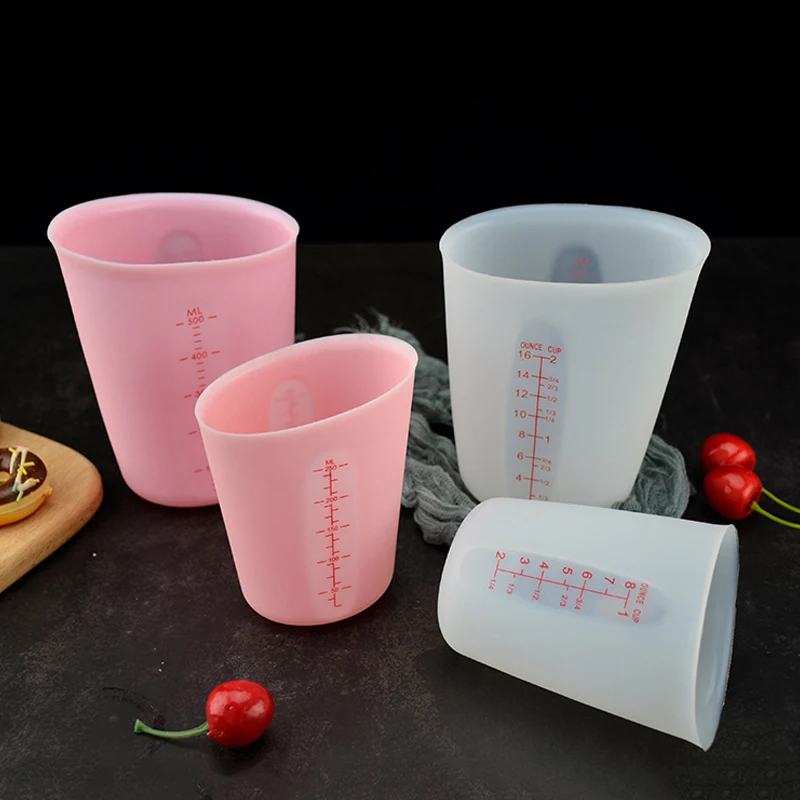 Еда Класс силиконовый мерный стакан 250 мл500 мл розового и белого цвета со шкалой чашка для молока жидкости тесто чашки Кухня формочки для выпекания кексов, горячая распродажа