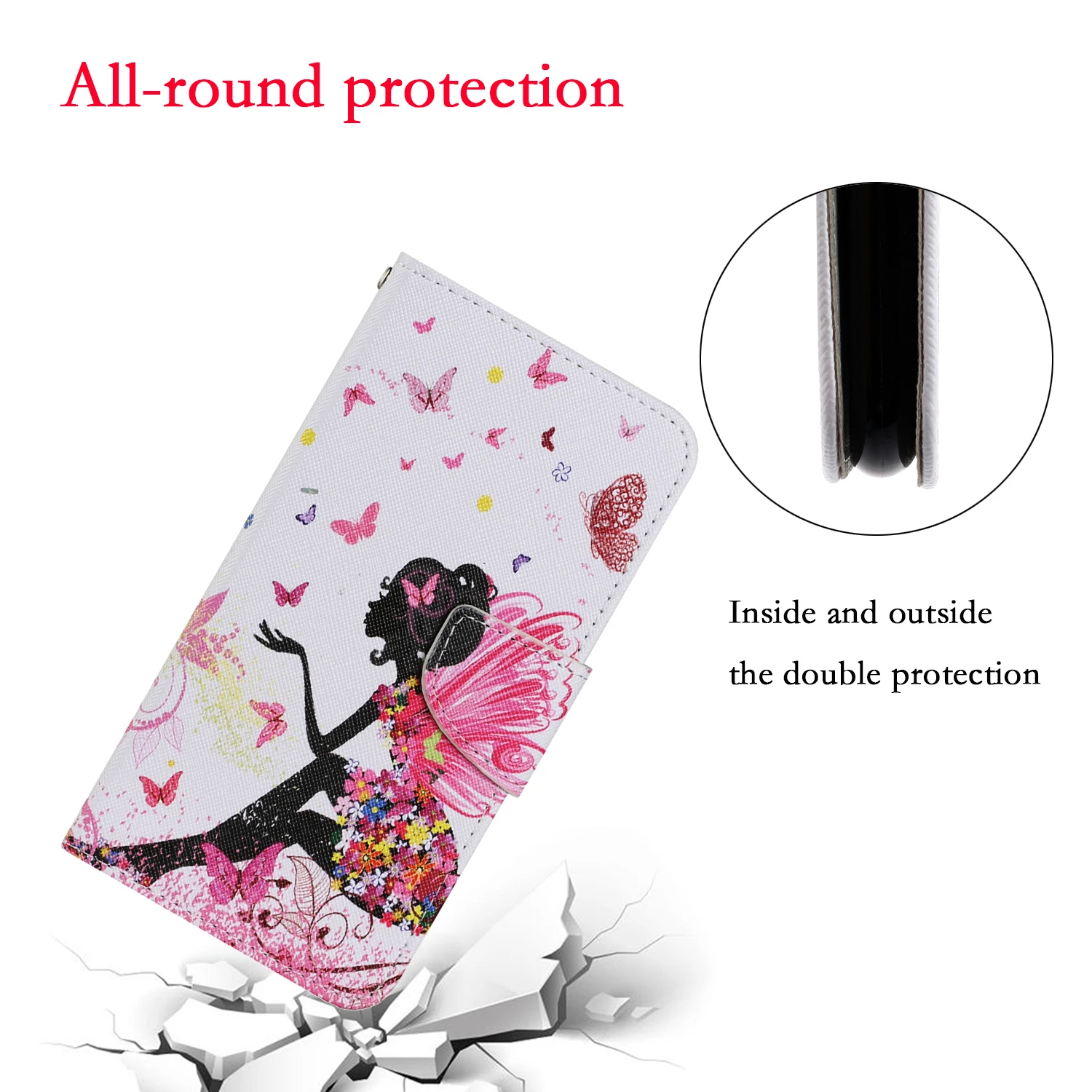 ● Функция: откидная подставка + сложенный кошелек + слот для карт + зажим для денег + фоторамка + магнитное притяжение