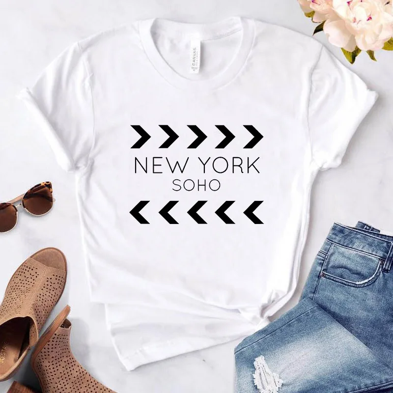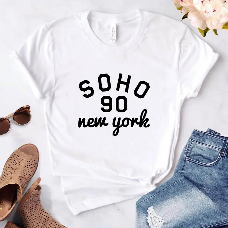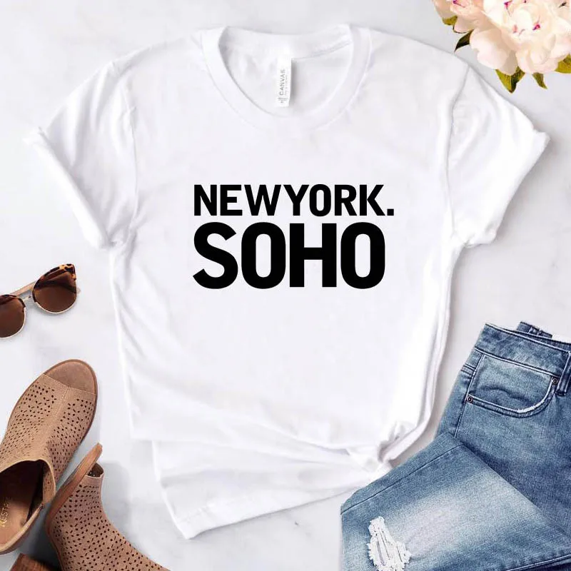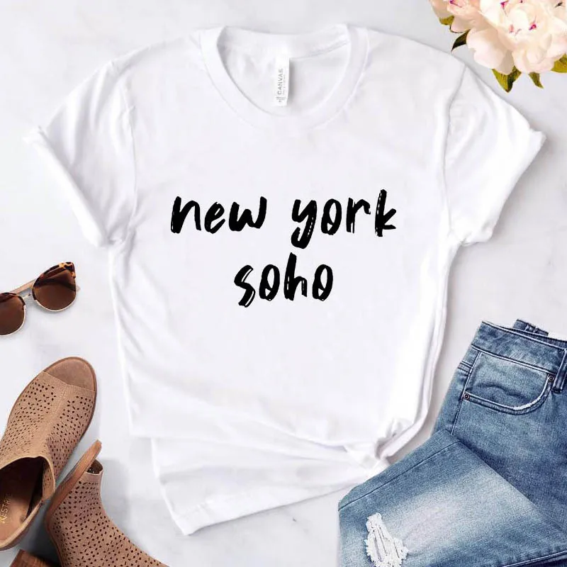 Женская футболка Нью-Йорк Soho буквы Милый Забавный Футболка женская футболка модные Harajuku топ размера плюс футболка