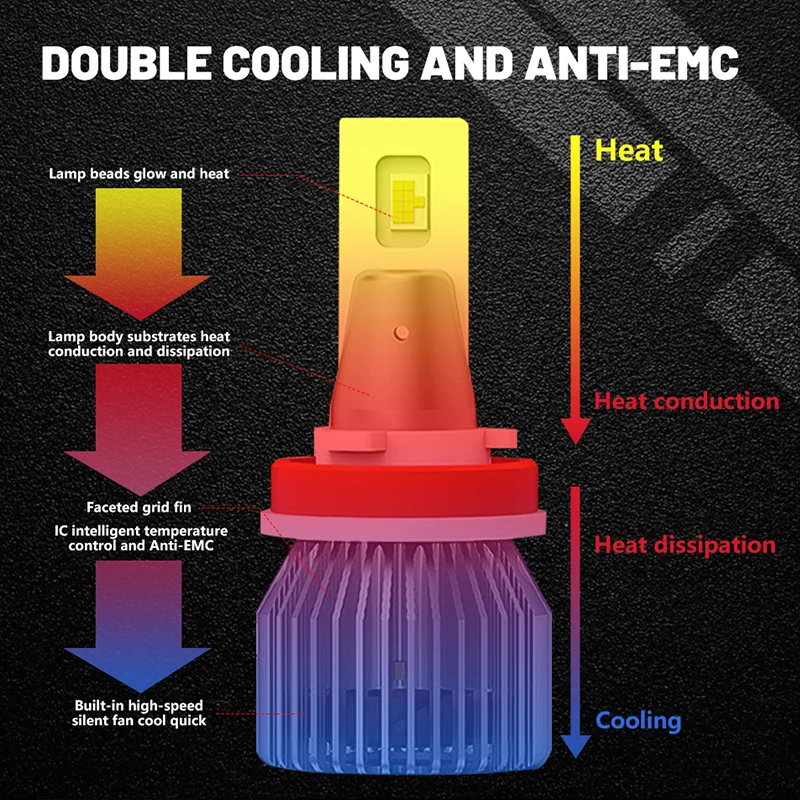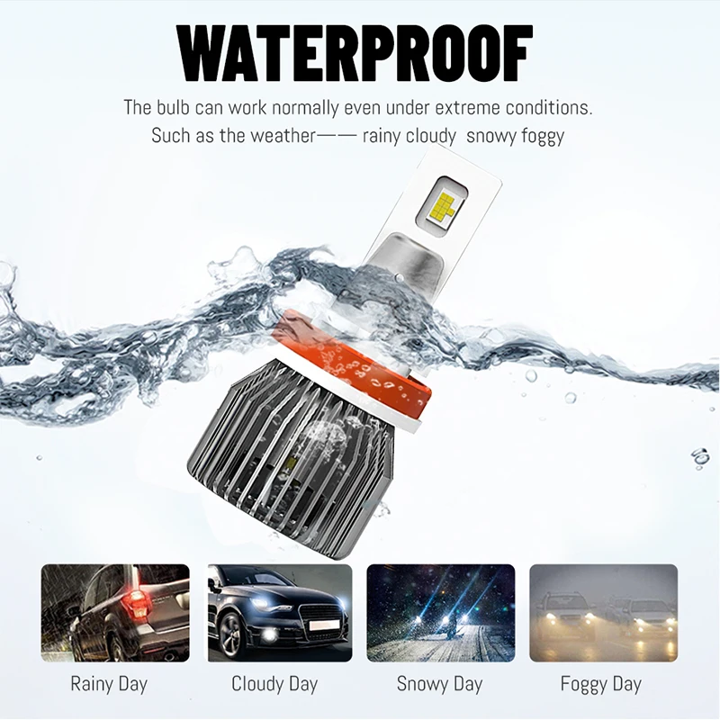 (1) светодиодная фара 25000лм/пара, каждая лампа 12500лм, супер яркая.(2) один светильник имеет 2 стороны 9 шт. чипов CSP.(3) Этот продукт 6000k, чисто белый светильник.(4) мощность этого продукта составляет 66 Вт/пара, каждая лампа-33 Вт.