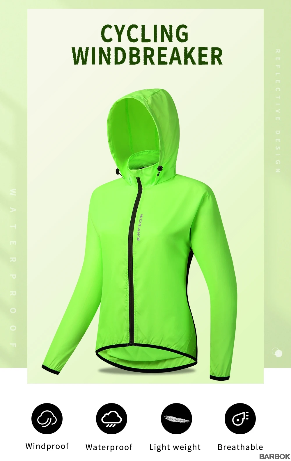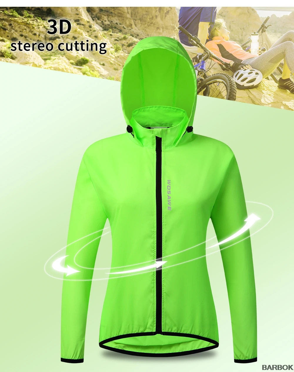 WOSAWEДля женщинВетровка с капюшоном для верховой езды, легкая ветрозащитная водонепроницаемая Спортивная быстросохнущая велосипедная майка