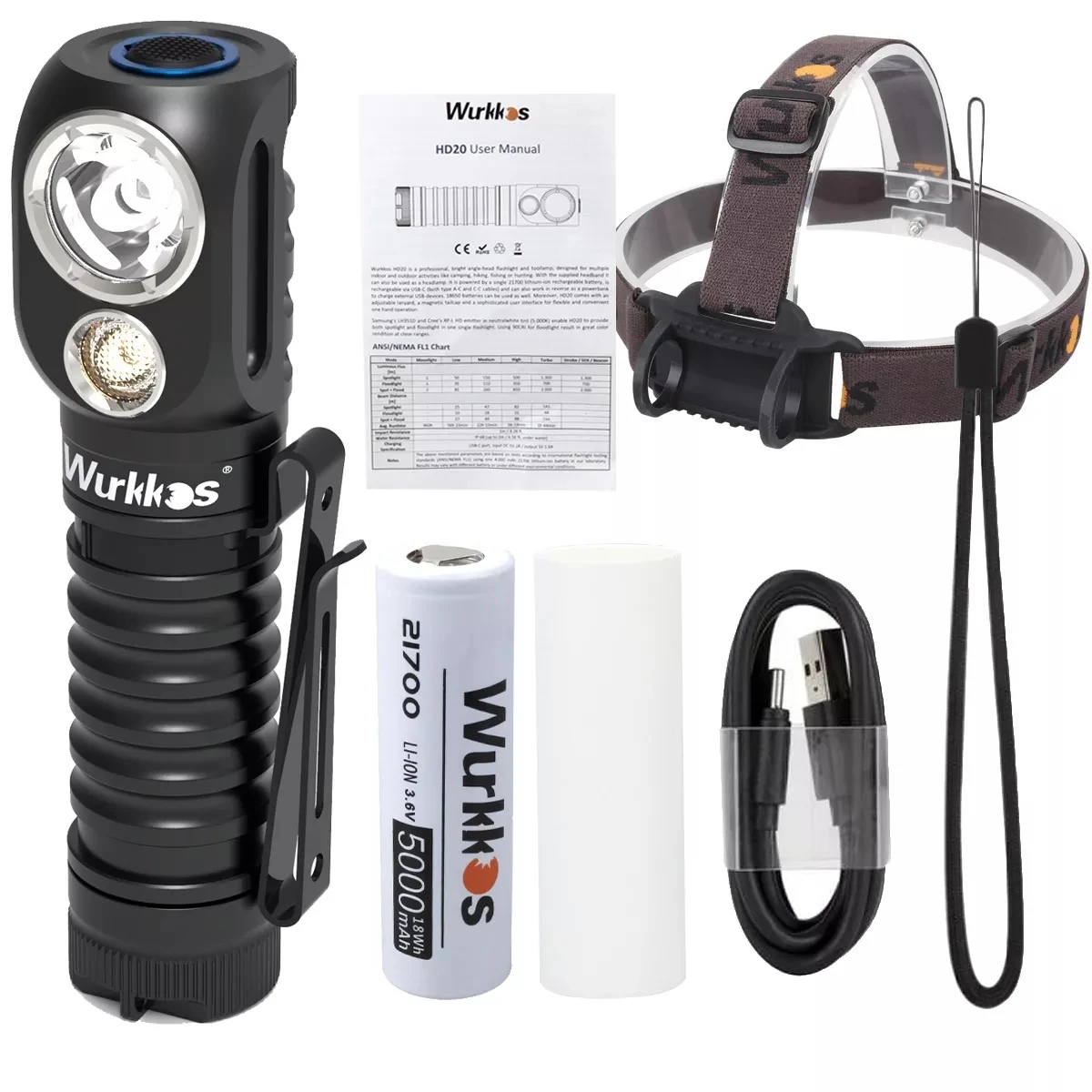 Перезаряжаемый налобный фонарь HD20 с USB C, светодиодный фонарь 21700 лм, двойной светодиодный фонарь s LH351D XPL с магнитным хвостом и обратной зарядкой