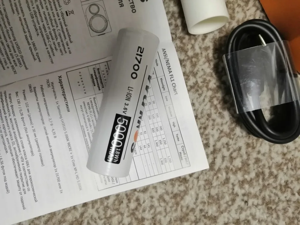 Фонарик очень понравился ! Качественная весь, красивый, хорошо светит, богатая комплектация, инструкция на русском языке , новый аккумулятор 21700 на 5000 мА, за такое конкуренты просят в три раза больше