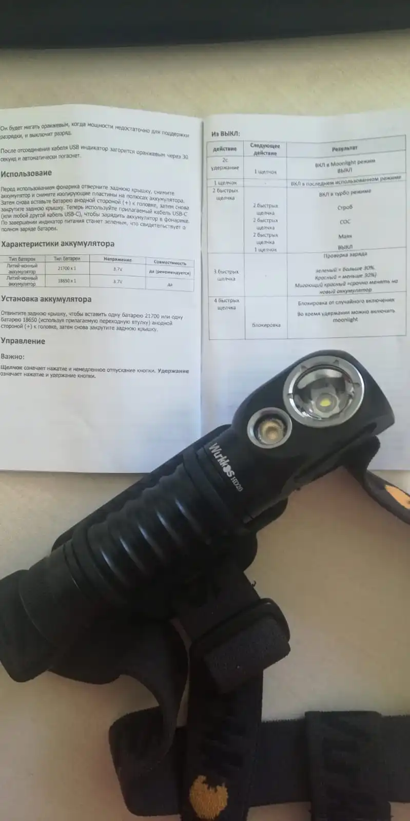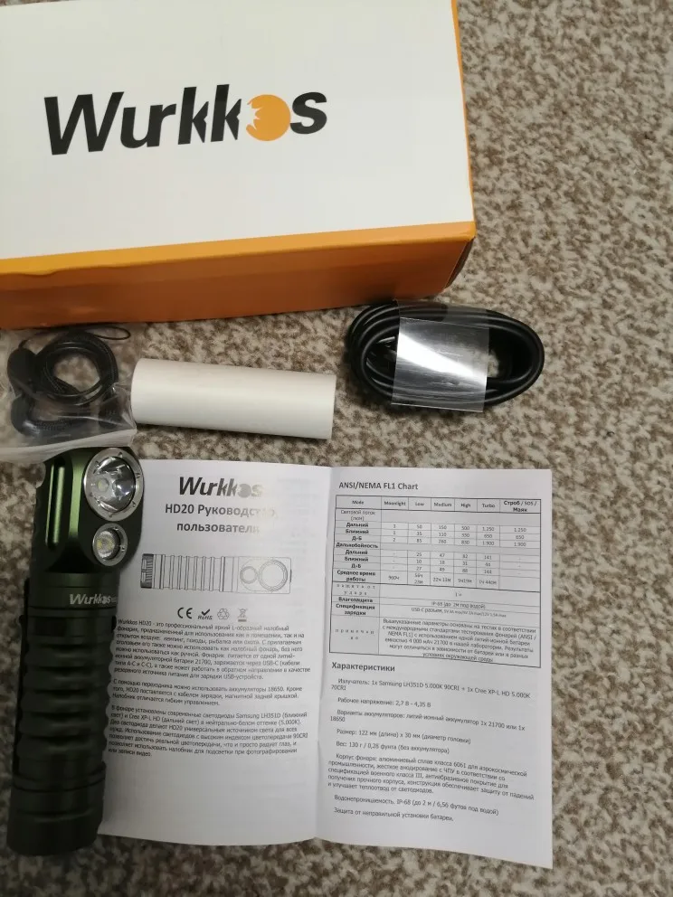 Отправили быстро, доставка немного задержалась, но не критично, примерно на неделю от указанного срока, хотя выбирал экспресс-доставку. Фонарь сделан очень качественно, на голове сидит удобно, ничего не мешает, не утомляет, хотя я б рассматривал этот фонарь не как наголовный, а на рюкзак, на разгрузку или на пояс. Как наголовник - это просто приятный дополнительный бонус. Самые важные моменты для меня - возможность работать на ближней и дальней дистанции, а так же долгое время работы из за более емкого аккумулятора. Ну и подзарядка телефона - тоже офигительная вещь. Правда кабель нужно докупить. Как я понял в комплект такой кабель не кладут из за того что телефоны (и соответственно разьёмы) у всех разные. Но такие кабели для зарядки сейчас в любом магазине уже есть. Продавцу 5*. И успехов.