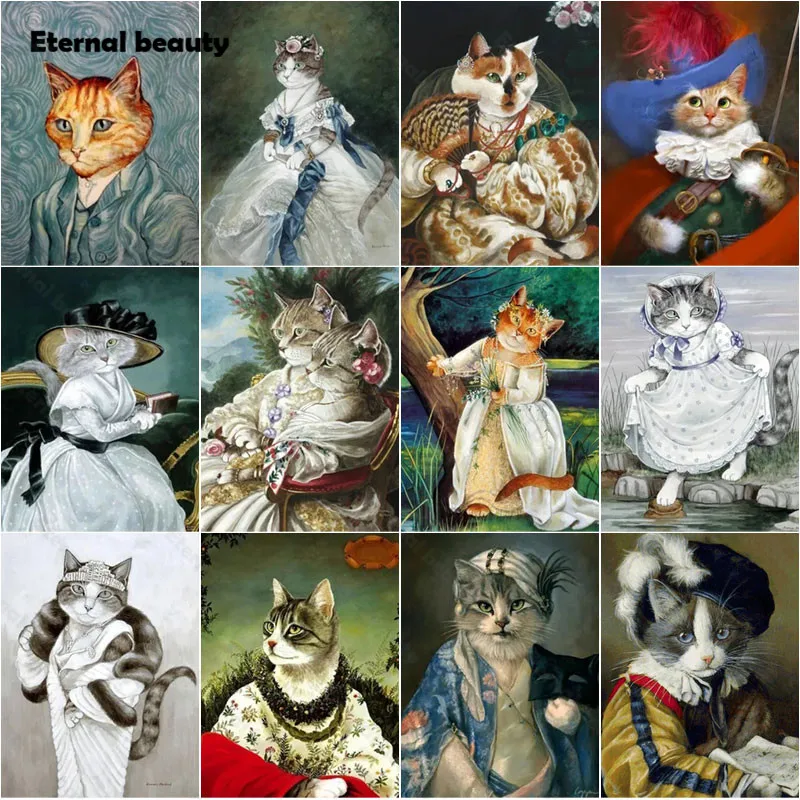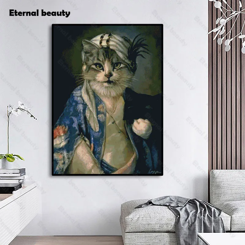 Алмазная живопись с кошками в одежде, полная круглая вышивка, алмазная вышивка, наборы для вышивки крестиком, мозаика, искусство, декоративные картины