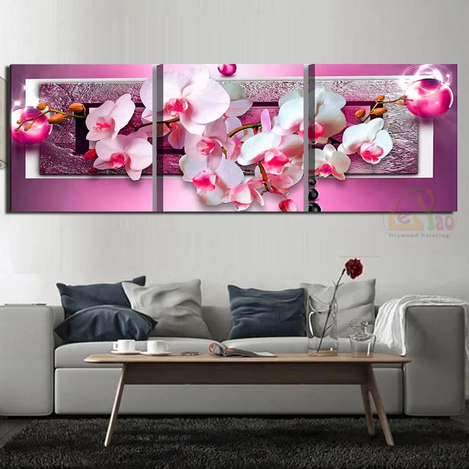 Орхидея, 3 шт., алмазная вышивка сделай сам, цветок, алмазная живопись, полноразмерная круглая дрель, Триптих для украшения дома