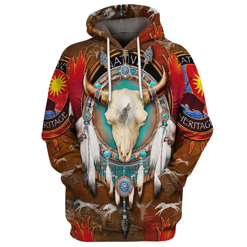 Мужское зимнее пальто 2021, худи с 3D принтом родного индейского бу...