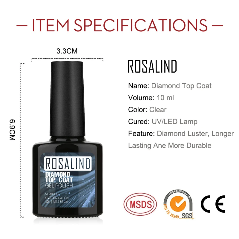 Базовое и топовое покрытие ROSALIND для ногтей, маникюрный Гель-лак для УФ-лампы, 10 мл, волшебное средство для снятия гель-лака, матовое покрытие гибридные Лаки