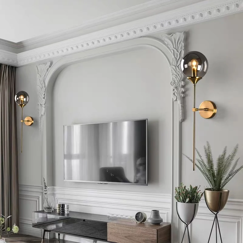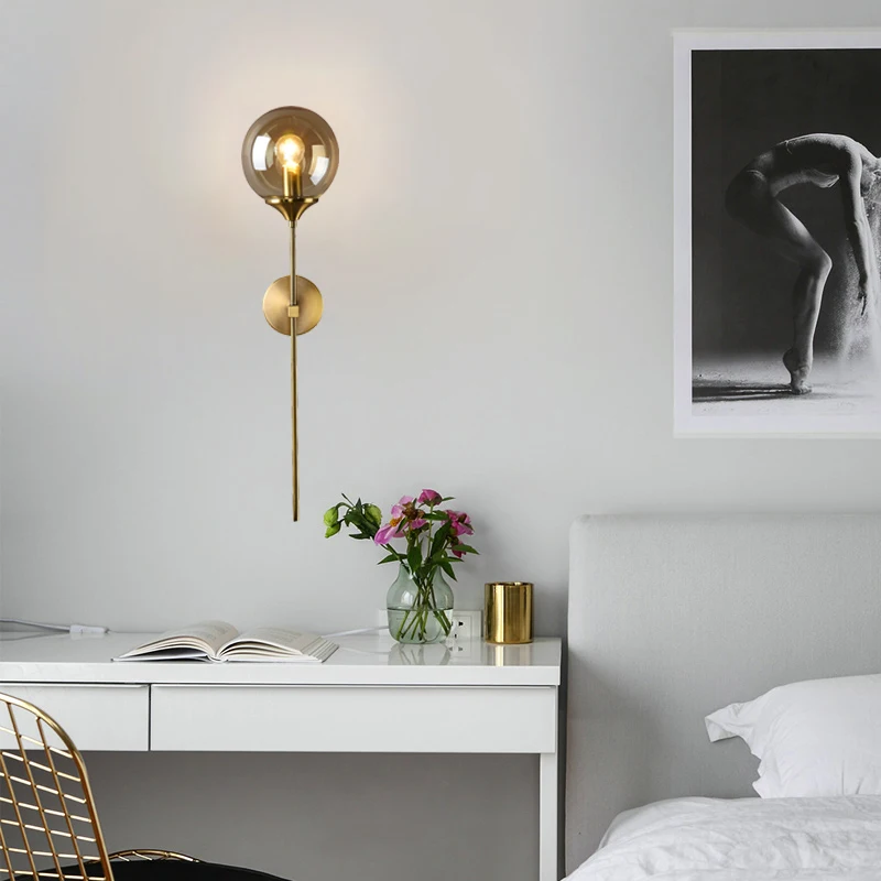 Современный стеклянный шар Эдисона настенный светильник Nordic Gold...