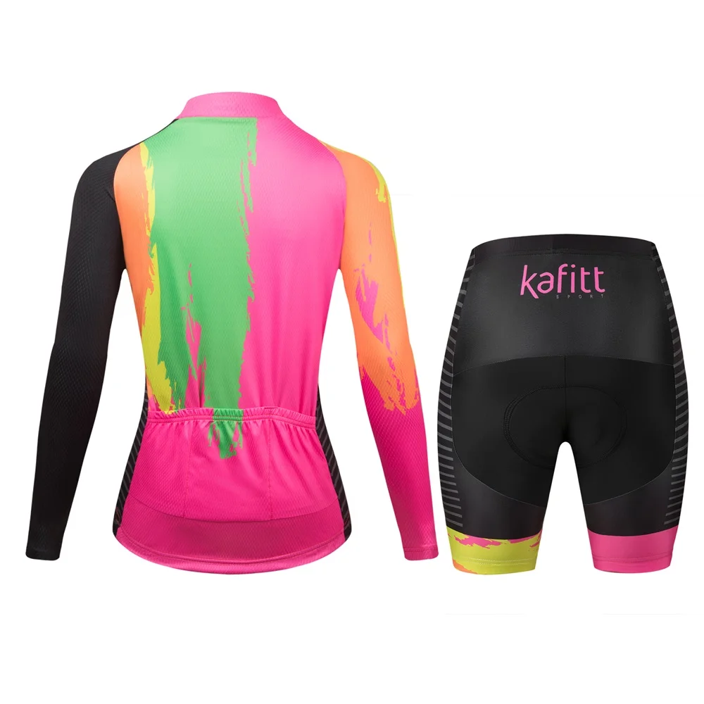 Женская длинная розовая велосипедная футболка Kafitt, профессиональная велосипедная рубашка для горных велосипедов, одежда для велоспорта, комплекты для велоспорта Go Pro Team