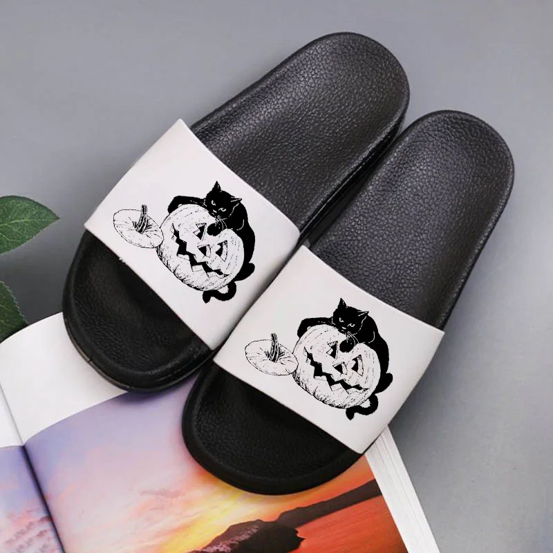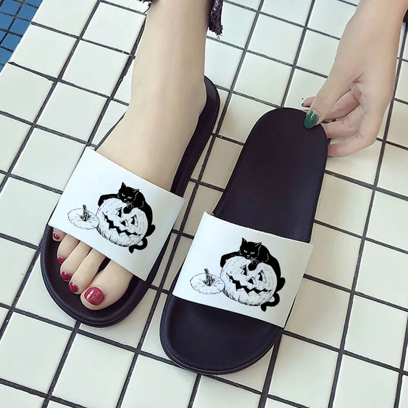 Летние Тапочки 2021, тыква, Черный кот, мультфильм, тапки для дома помещений, тапочки, комфортные тапочки, повседневные шлепанцы для женщин