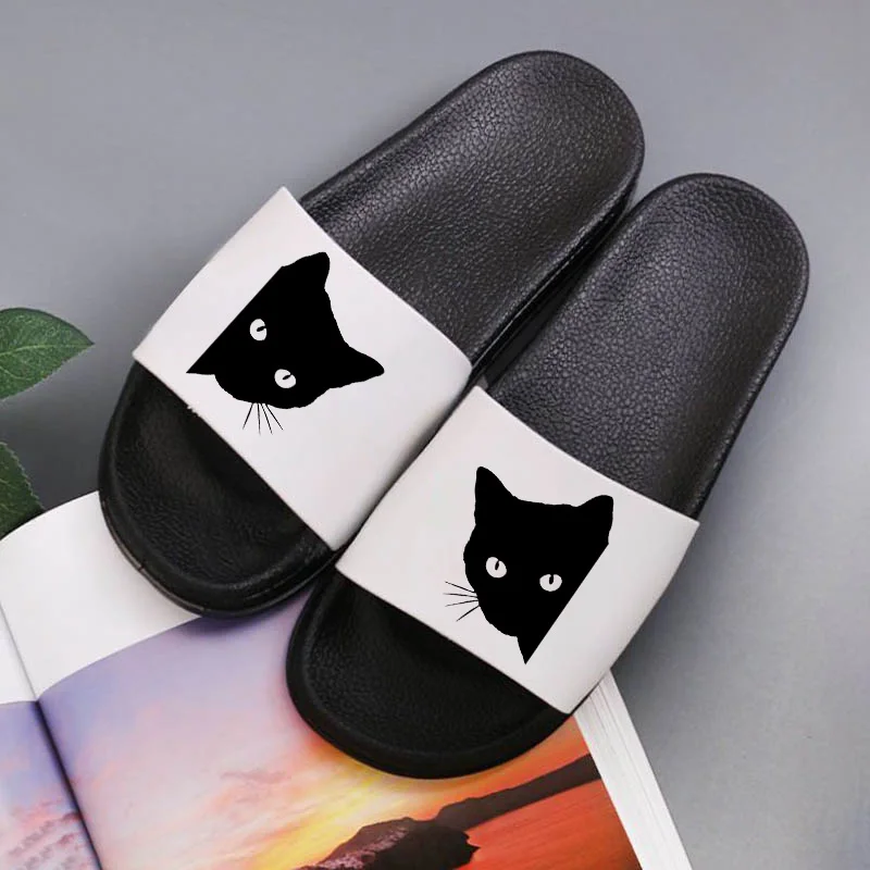 Шлепанцы женские с мультяшным принтом кота, повседневные сандалии, ...