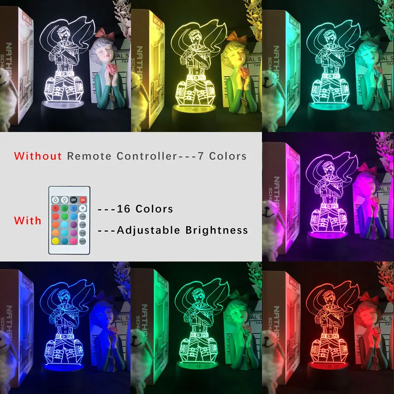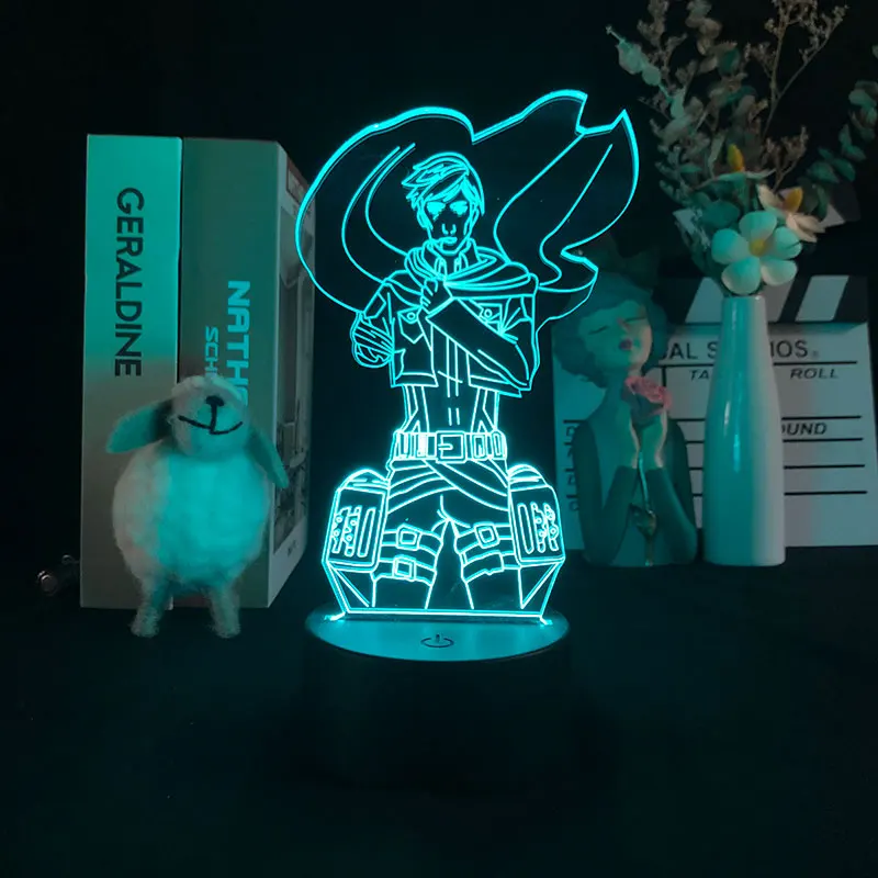 Короткая футболка с героями из японского аниме обувь для косплея по аниме атака на Титанов Эрвина Смит 3D ночной Светильник будильник база Цвет изменение Delineascope уникальный подарок для детей на каждый день