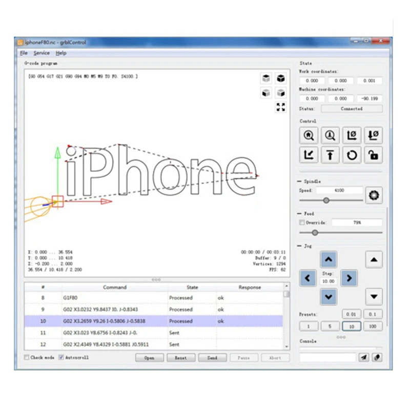 Система управления: GRBL Поддержка программного обеспечения: grblcontrol/candle (3 оси); lasergrbl (лазер) Поддержка системы: windows XP; 7/8/10 Шаговый двигатель: Поддержка 24 В 2 А Мотор шпинделя: Поддержка 24V 10A (поддерживает PWM0 %-100%) Лазерный: 12V5Amax (1W/2,5 W/5,5 Вт/7 Вт/10 Вт/15 Вт) Вход питания: 24 В (12-24) Автономное управление: Поддержка gcode, txt, tap, nc, ncc, cnc и других форматов обработки файловТип: гравер GRBL плата управления