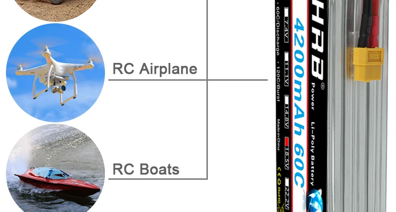 Аккумулятор HRB 6S XT60 22,2220018002600330040005000600010000120001...