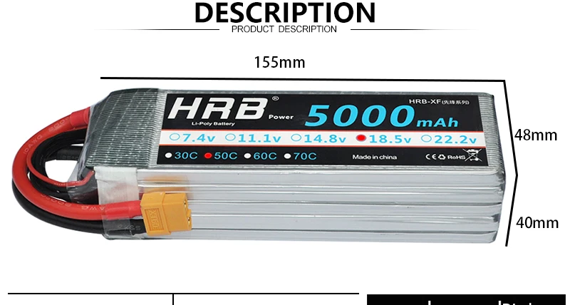 HRB 5S 18,5 V литий-полимерный аккумулятор XT60 1800 2200 мАч 2600 мАч 3000 мАч 3300 мАч 4000 мАч 5000 мАч 6000 мАч 10000 мАч 12000 мАч 22000 мАч RC частей