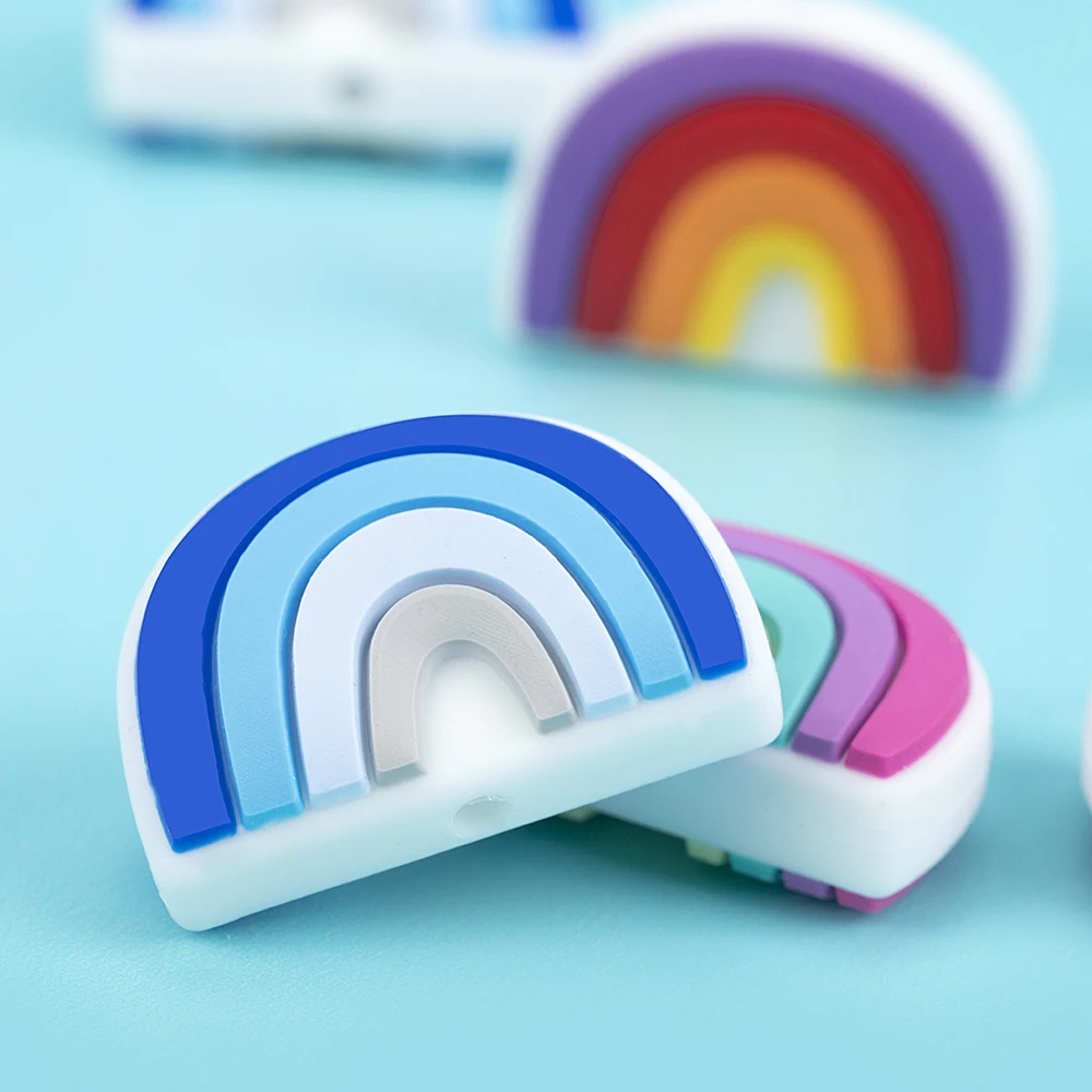 Мультяшные радужные силиконовые бусины Sunrony, прорезыватель, зажи...