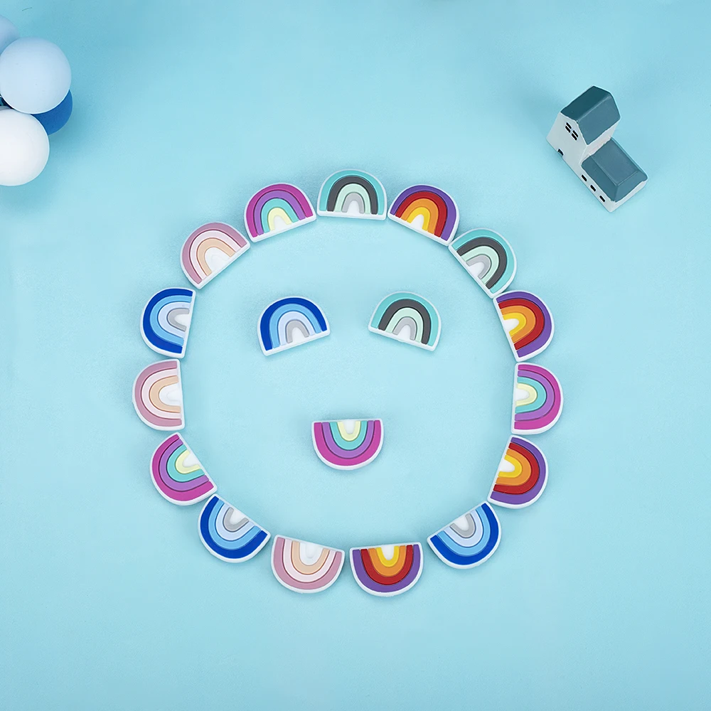 10 шт., радужные силиконовые бусины-прорезыватели для зубов