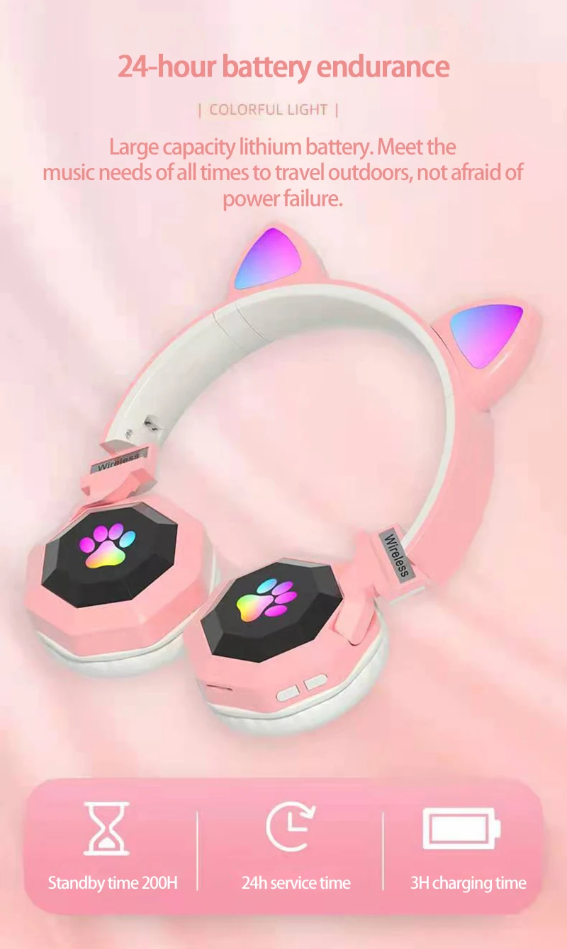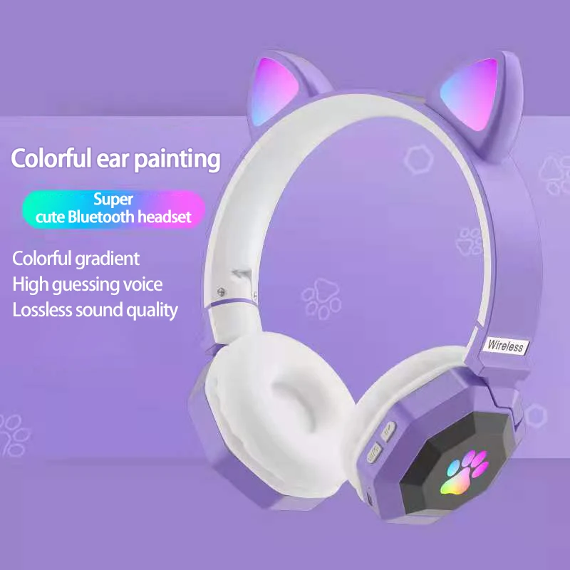 Bluetooth-наушники со светодиодный кошачьими ушками, ШПД 5,0, поддержка TF-карты, FM-радио, микрофоном
