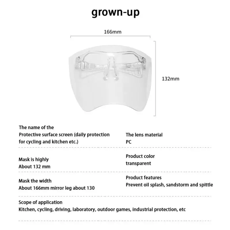 Прозрачная маска для лица унисекс для взрослых, защитная пластикова...
