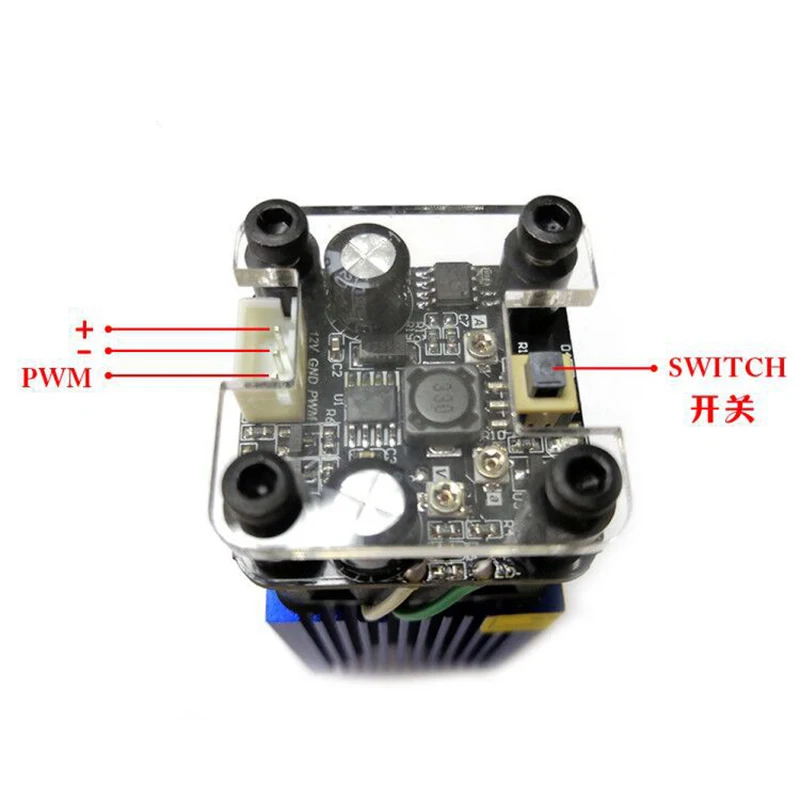 Технические параметры:Длина волны лазера: 445нм (синий светильник)Тип точки: точка (регулируемый фокус)Светильник Выходная мощность: 15 Вт (15000 МВт)Режим привода: внешний ACC постоянный токМетод охлаждения: принудительное воздушное охлаждениеРабочее напряжение: 12 В постоянного токаМощность поставить интерфейс управления: 2,54-3P (Мощность может быть контролируется PWM или TTL сигнала)Случайная функция: низкий светильник функция позиционирования (переключатель открыть слабый низкий-Выходная мощность)Материал корпуса: алюминий, анодированная черная поверхностьМатериал модуля: медьКоллимативный объектив: оптическое стеклянное покрытиеPakage список:1 * лазерная головка1 * кабель1 * очки