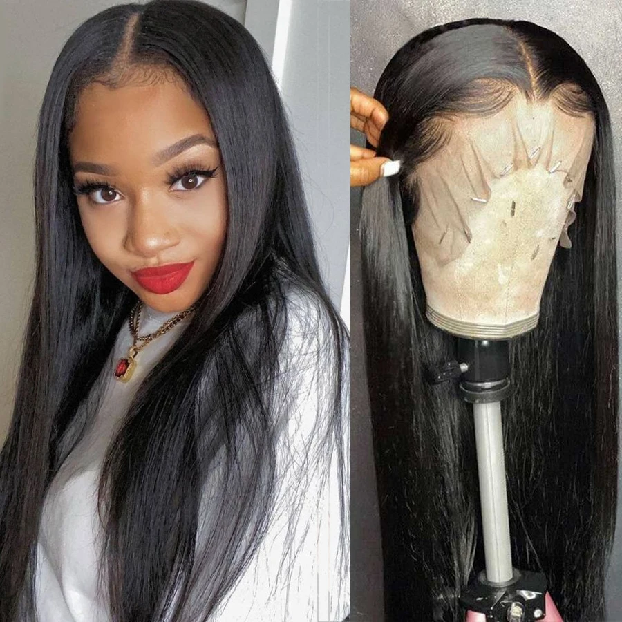 Парик на шнуровке с Т-образной частью, искусственные волосы, средняя часть 13x1, парики на шнуровке, дешевые бразильские прямые человеческие волосы, парики для женщин, Remy