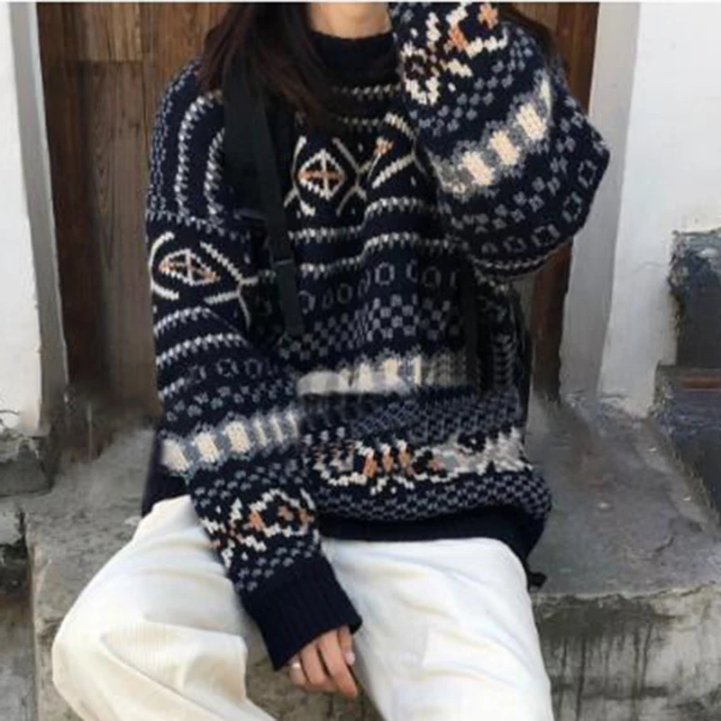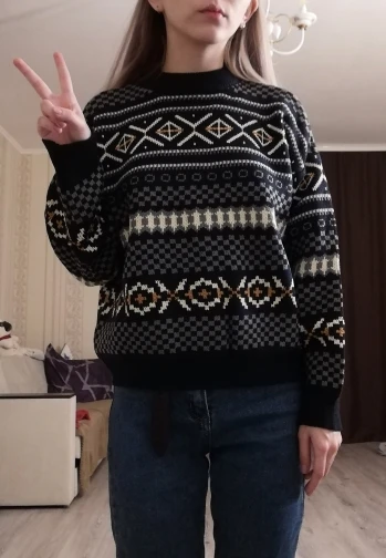Свитер женский вязаный, жаккардовый, зимний, свободный