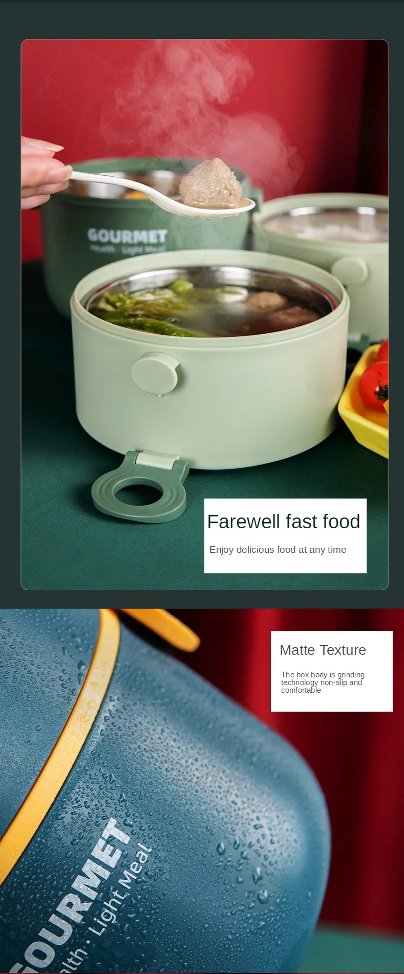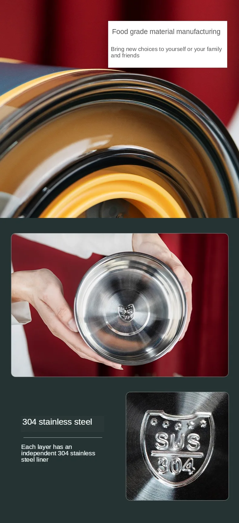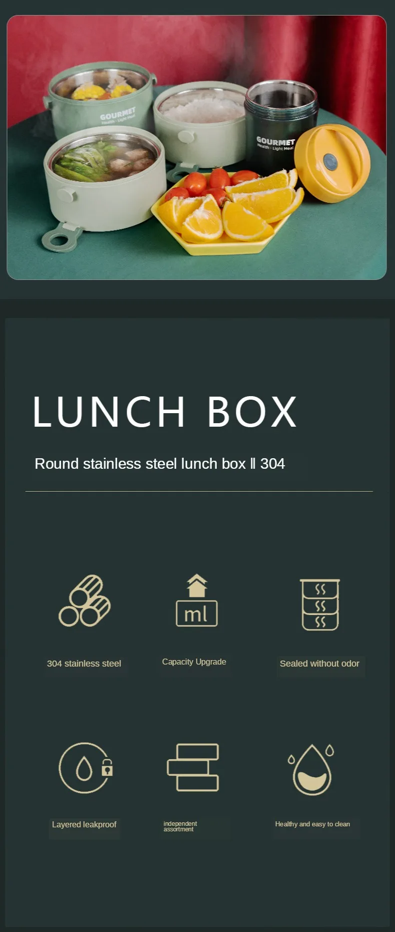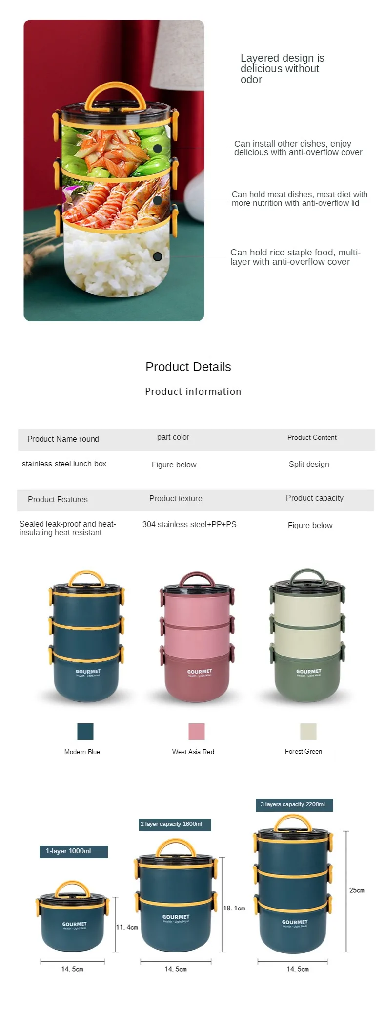 Круглая коробка для хранения тепла из нержавеющей стали, Студенческая коробка для завтрака, коробка для обеда, многослойная портативная коробка для хранения тепловых бочонок для хранения пищевых продуктов