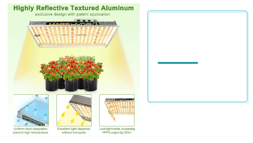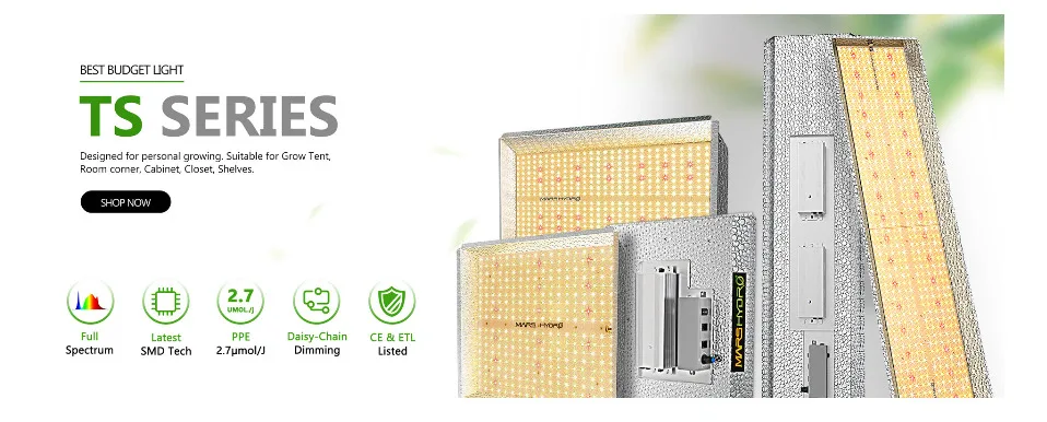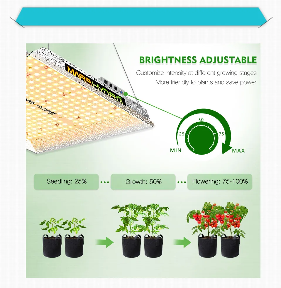 Mars Hydro TS Series светильник s-это самый высокий светодиодный светильник, доступный в прошлом году. Новейший SMD СВЕТОДИОДНЫЙТехнология обеспечивает наивысший PAR/LUMEN выход, предназначен для замены трандионального HPS светильник, максимальный выход2,4 g/w делает вас получить 30% высокий выход сравните старый blurple светодиодными лампами.