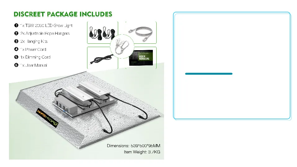 ХарактеристикиDimmable Power+Full Spectrum+Low Heat+High Yield,Silent-running
