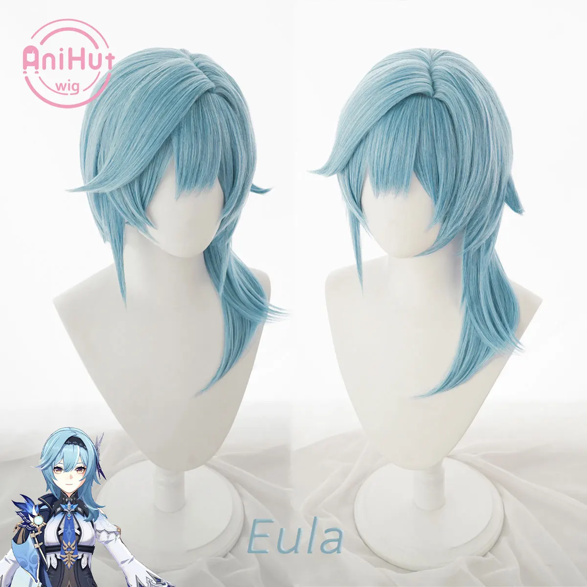 Парик Genshin Impact для косплея Из синих термостойких синтетических волос Eula для косплея на Хэллоуин