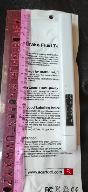 Работает. Но не внятно. Впрочем и цена. Доверять на 100% не стоит, но как дополнительный фактор к замене (действию) чего бы и нет. У меня тормозуха в машине не менялась 5 лет (Dot-4). Тестер показывает норм. Странно. Но в воде показывает ахтунг! (На фото). Продавцу спасибо! Решать вам. Замена тормозуха по регламенту не реже чем через 2 года, напоминаю :)