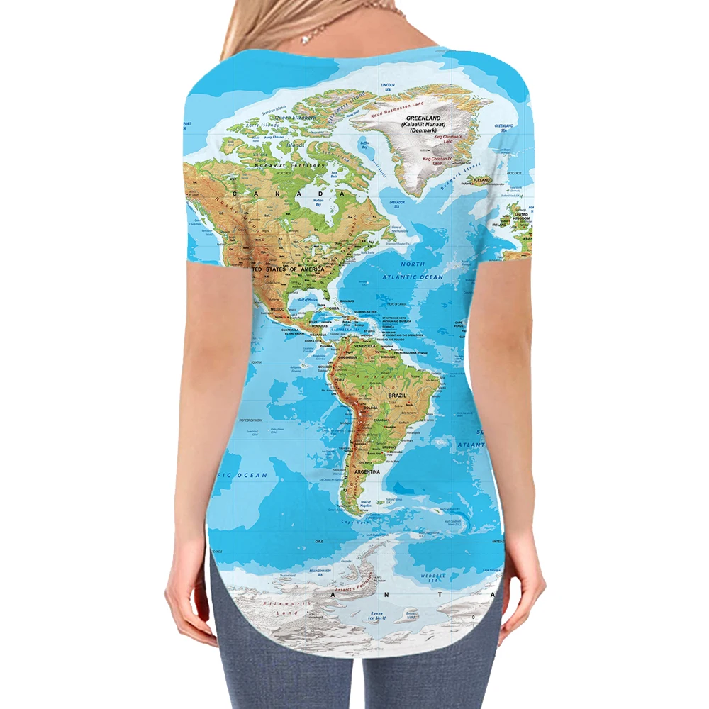 Женская футболка KYKU, летняя футболка с V-образным вырезом и принтом карты мира