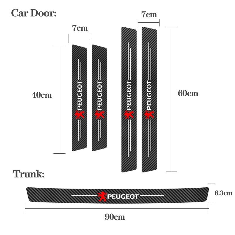 Углеродное волокно, кожа, автомобильный Стайлинг, дверь, багажник, порог, протектор, наклейка для Peugeot 106 107 208 306 307 308 405 508 3008 4007 4008 5008