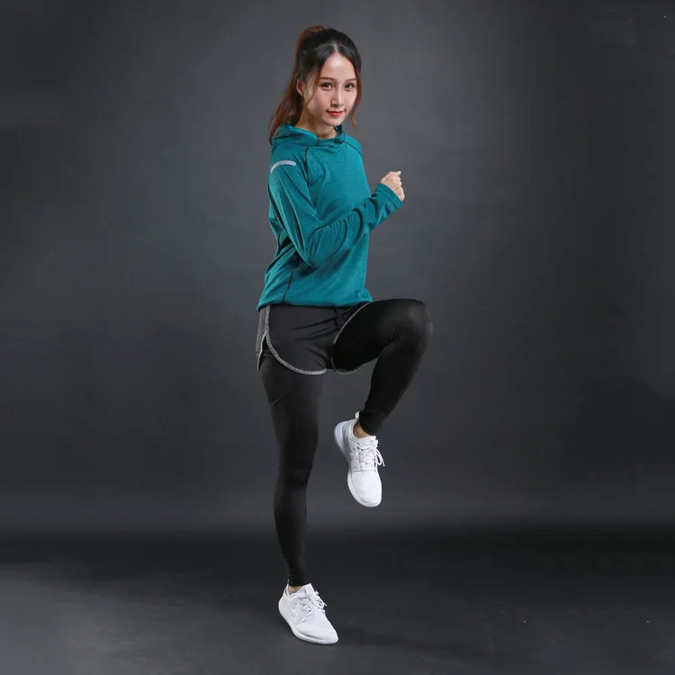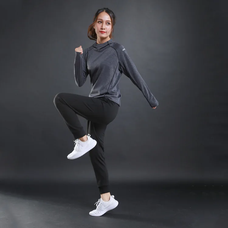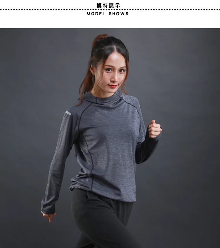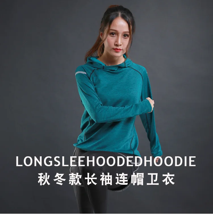 Осенняя Женская Спортивная футболка для тренажерного зала, повседневные облегающие Топы с длинным рукавом, футболки, эластичная дышащая быстросохнущая куртка с капюшоном для фитнеса
