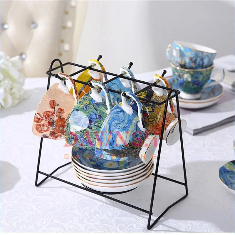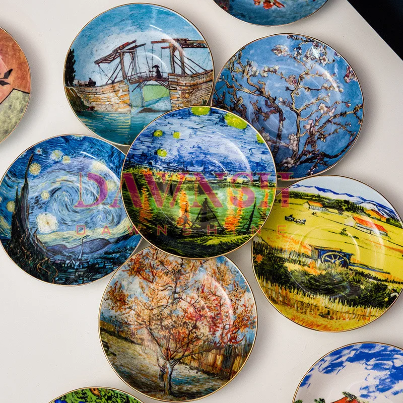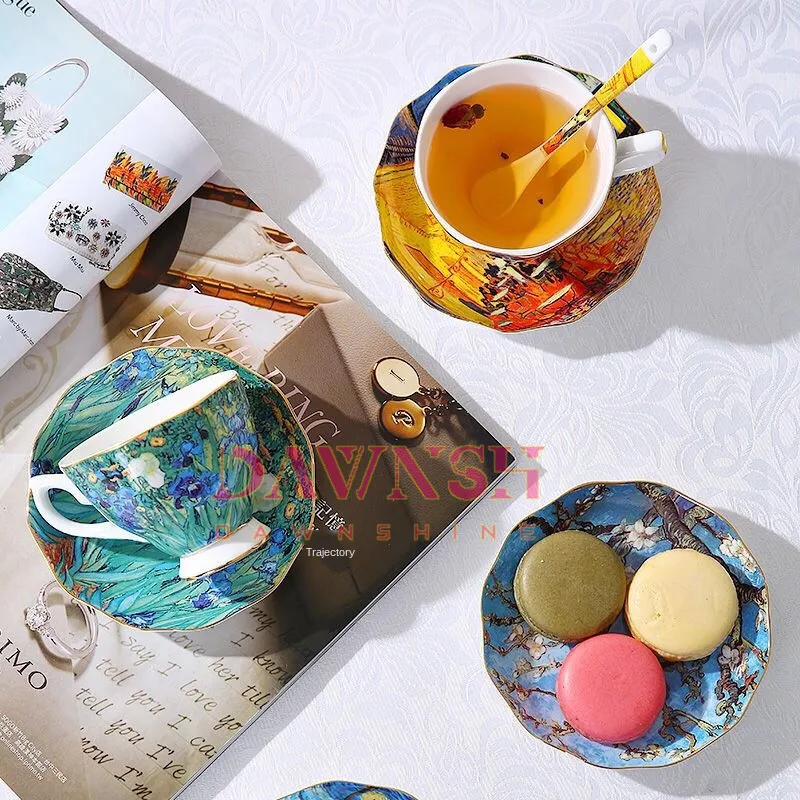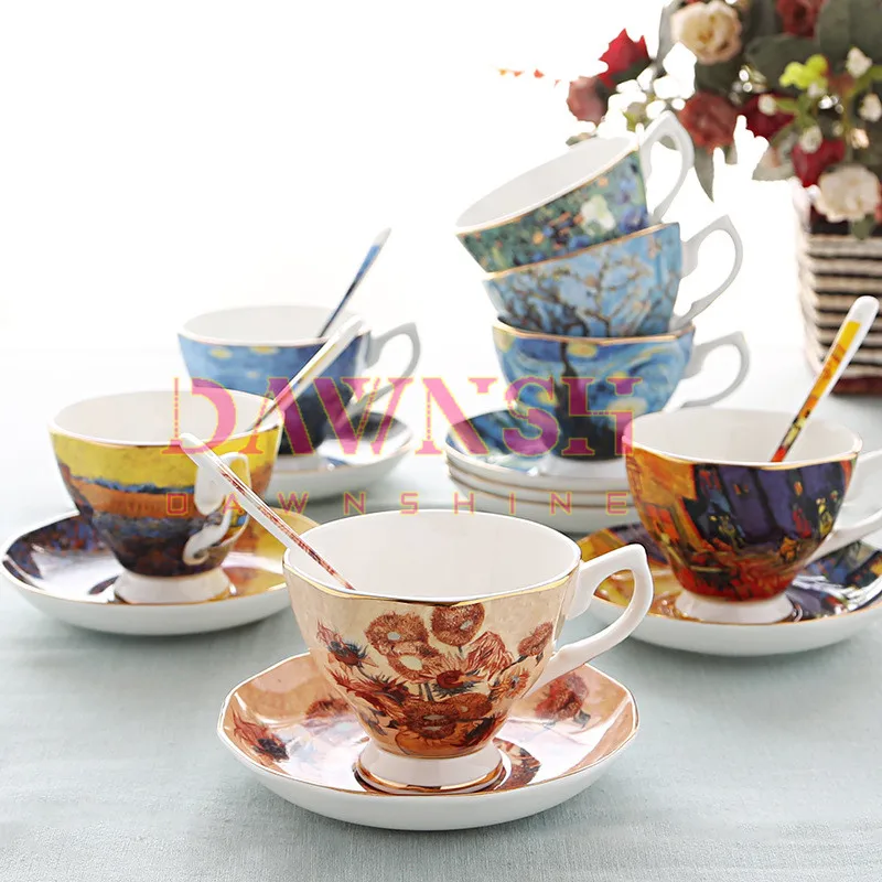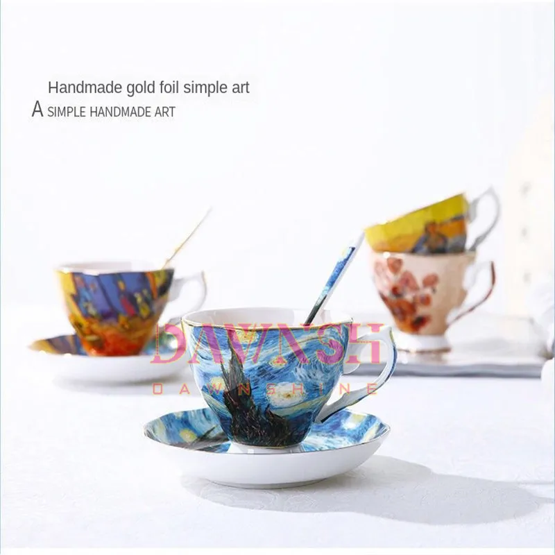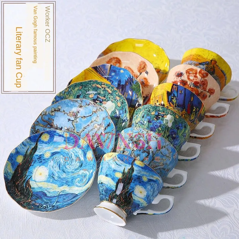 Ван Гог Европейский стиль домашняя кухня цветной рисунок декоративная художественная тарелка керамические чашки костяные КИТАЙСКИЕ чашки для кофе послеобеденного чая