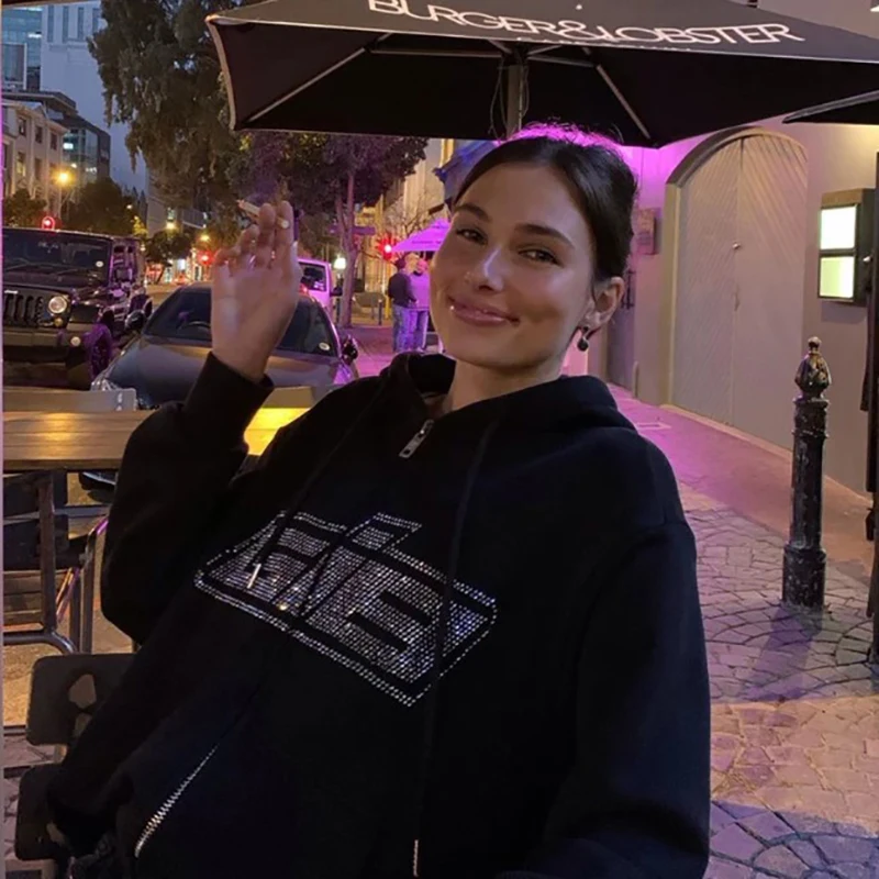 2000s Y2K модные стразы молния Негабаритных Толстовки E-для девочек...