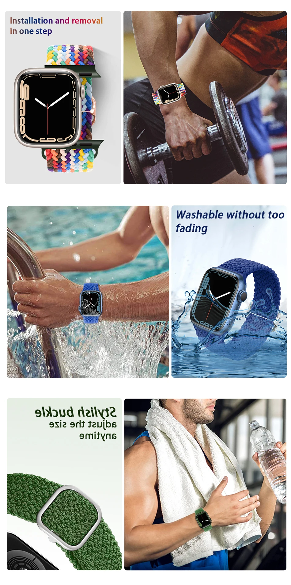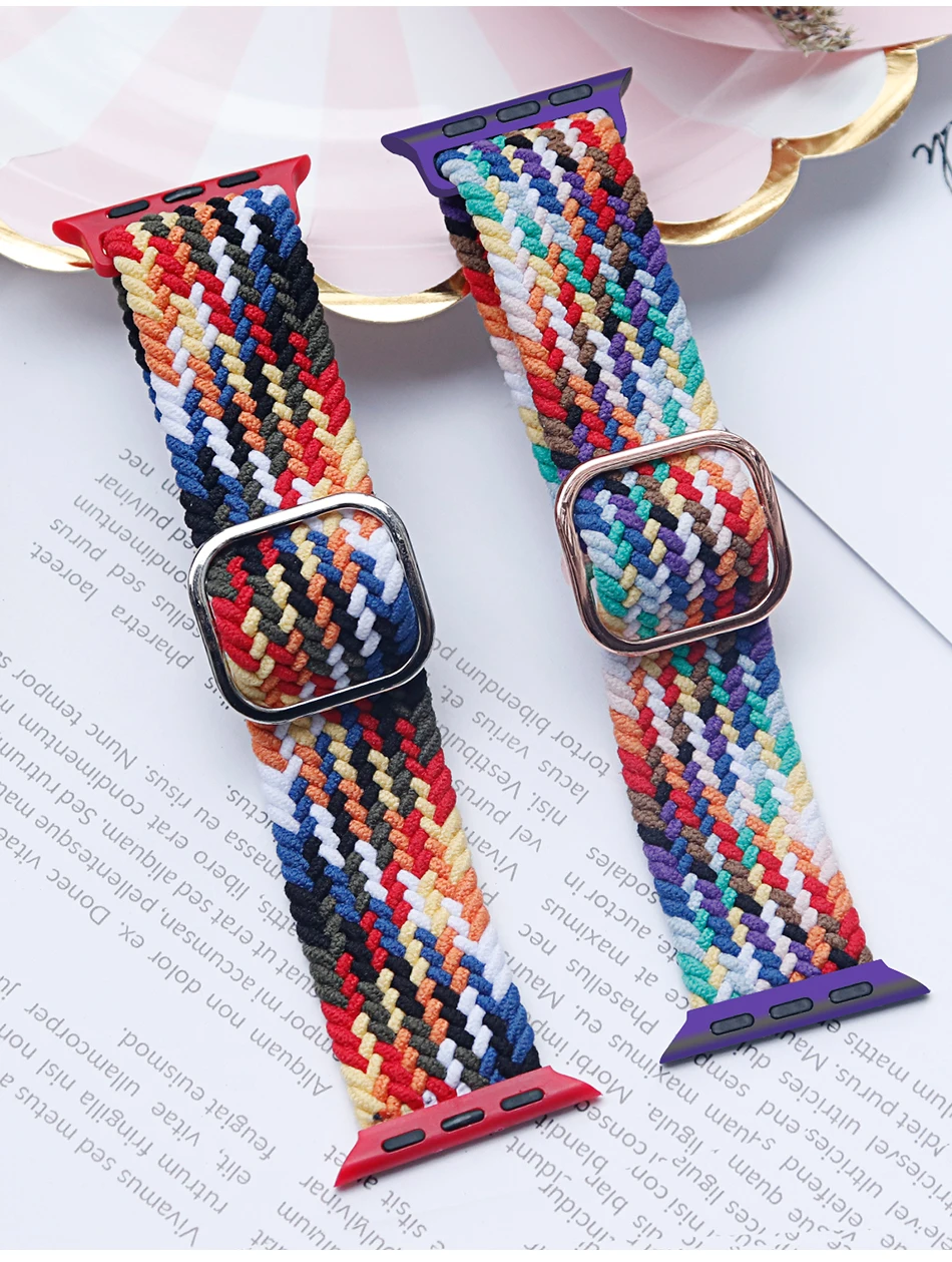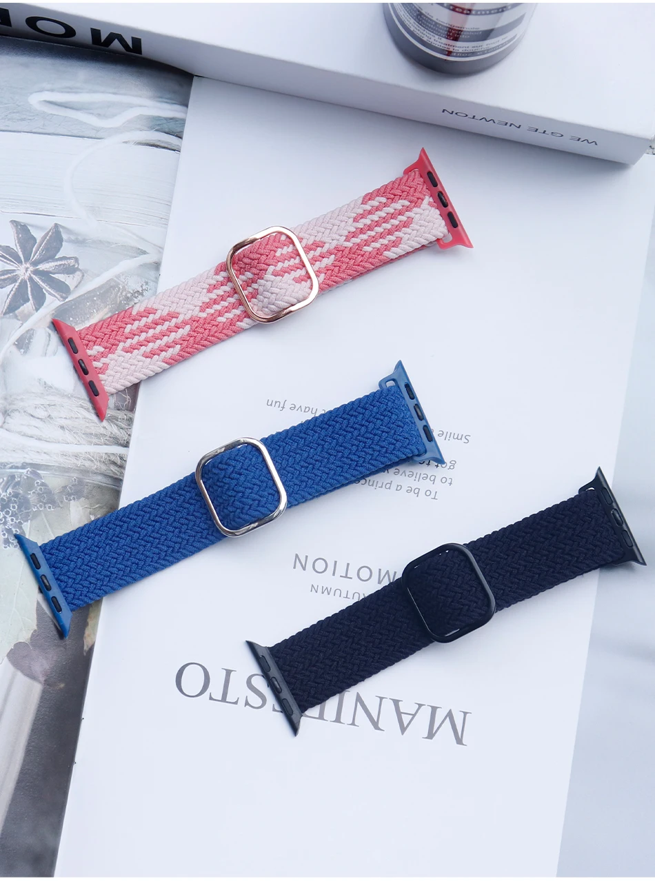 Ремешок Плетеный для Apple Watch Band 44 мм 42 мм 40 мм 38 мм, Нейлоновый Регулируемый Браслет для iWatch series 3 4 5 6 SE 7 45 мм 41 мм