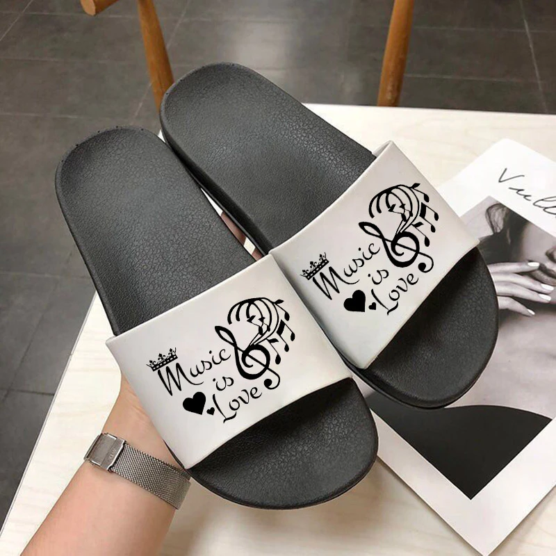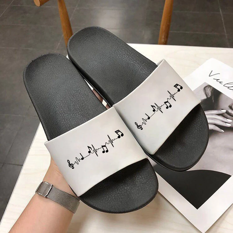 Сланцы женские пляжные, сандалии с музыкальным принтом, Нескользящие, для ванной и дома, летняя обувь