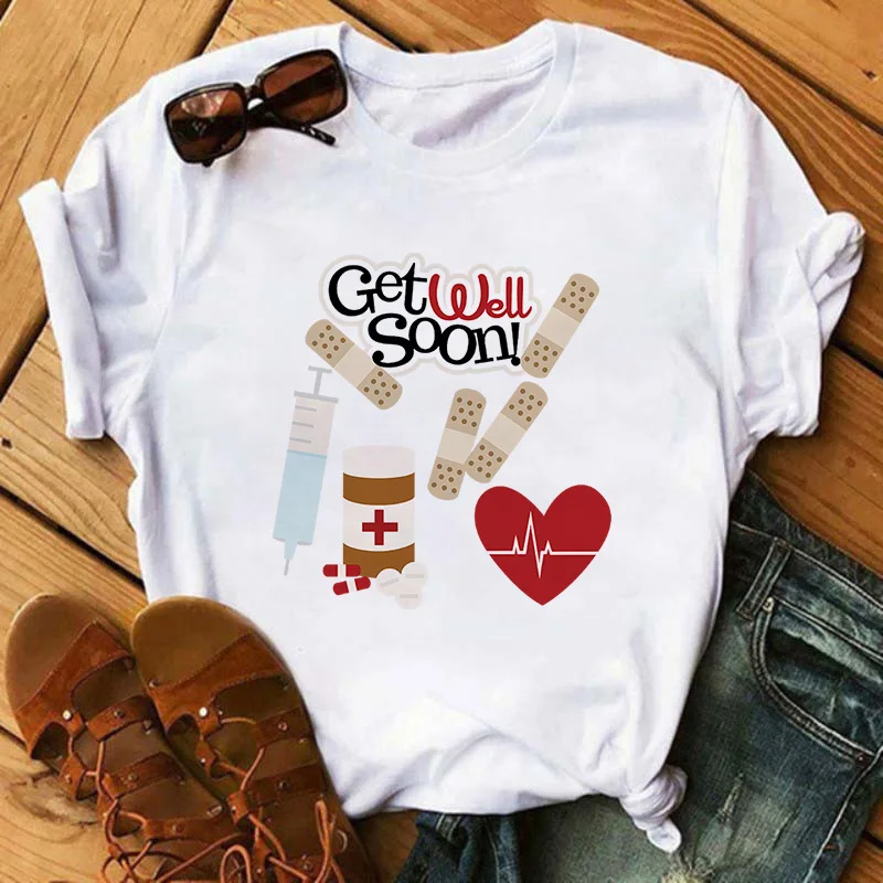 Летняя женская футболка с принтом медсестры, Повседневная футболка ...