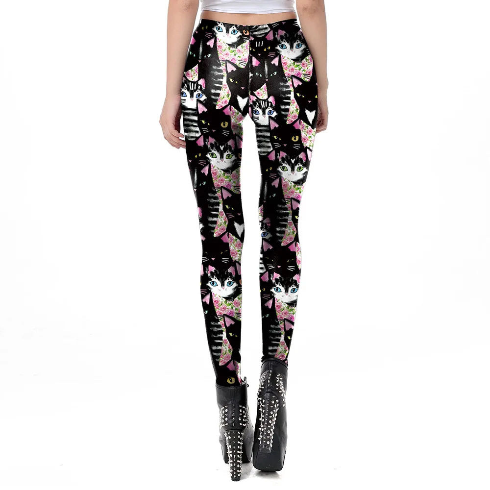 Леггинсы женские с завышенной талией, с принтом кошек, весна-лето 2021