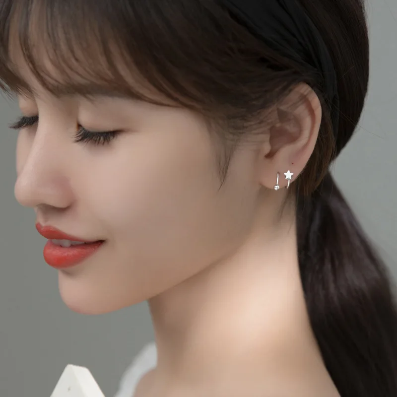INZATT реальные 925 стерлингового серебра звезда шарик в форме сердца серьги в виде колец, для Модные женские вечерние панк ювелирные украшения минималистский аксессуары