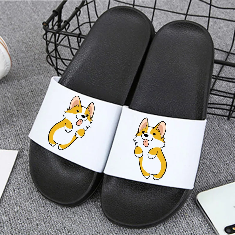Шлепанцы женские с забавным рисунком, Повседневные Симпатичные домашние тапки корги для ванной, сланцы для душа, тапки для дома