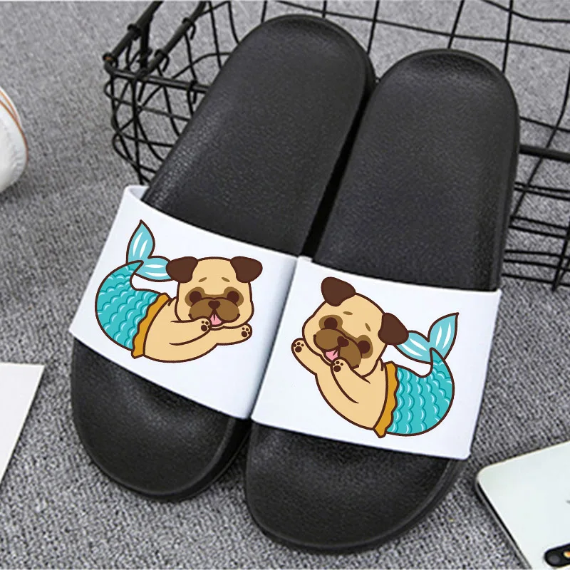 Мультфильм мило весело Мопс для женщин; Тапочки на нескользящей под...