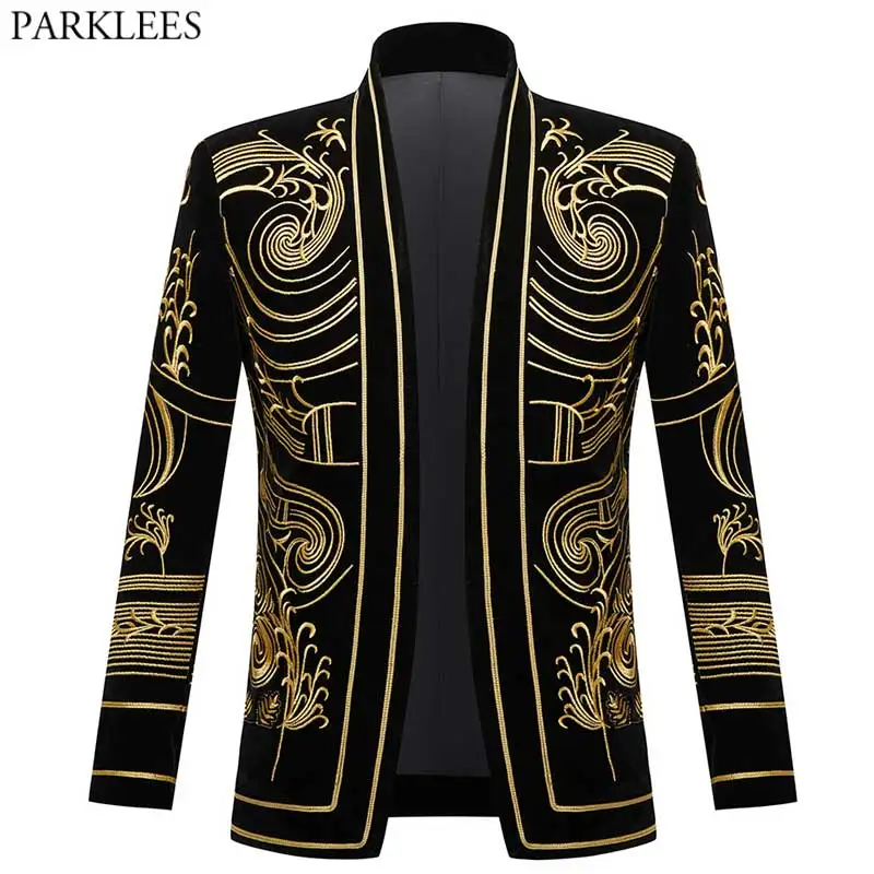Роскошный пиджак в стиле барокко с золотыми цветами блейзер в полоску с вышивкой, мужской бархатный кардиган с лацканами, блейзеры, мужской костюм для свадебной вечеринки, выпускного вечера