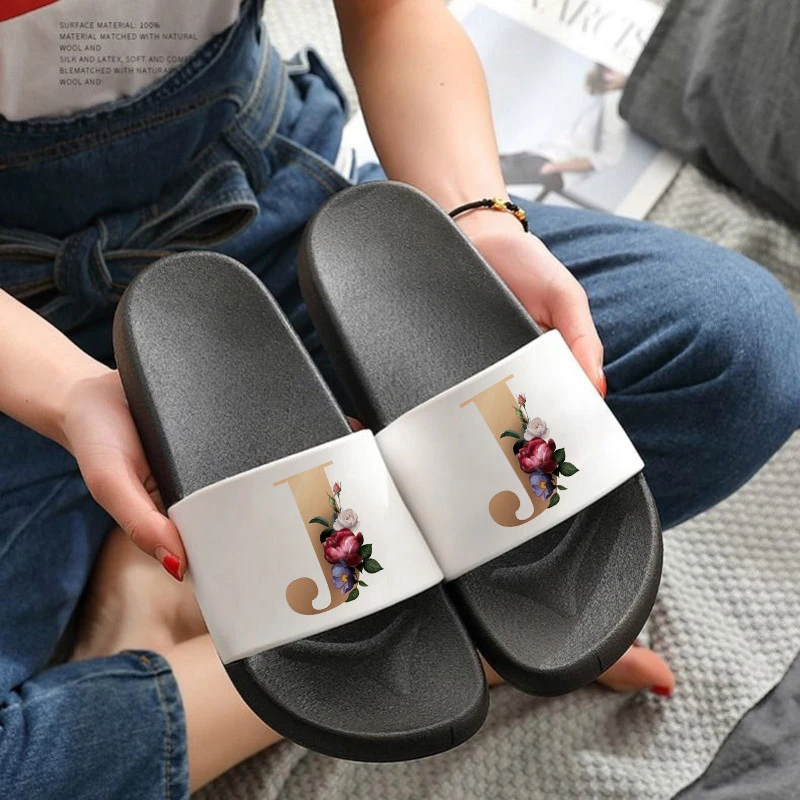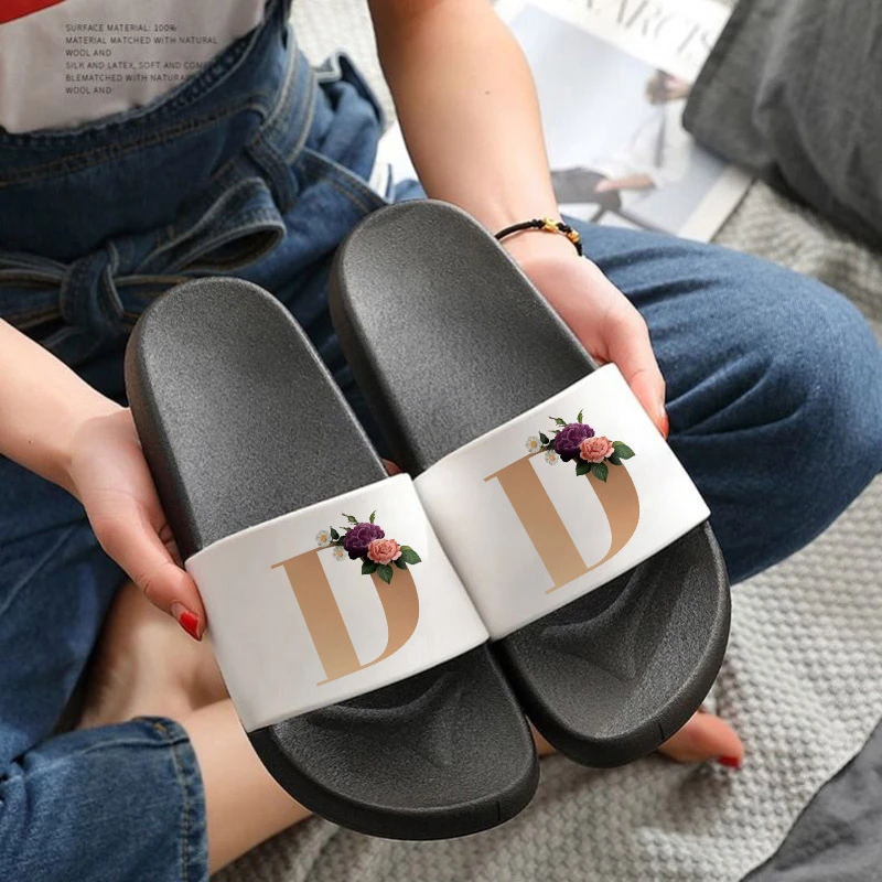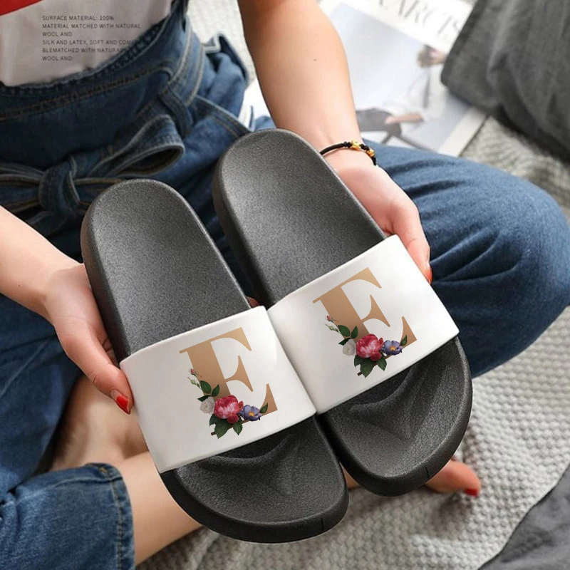 Новинка 2021, тапочки 26 дюймов, женские удобные тапочки с надписью на заказ, шлепанцы с цветочным рисунком, с буквами A, B, C, D