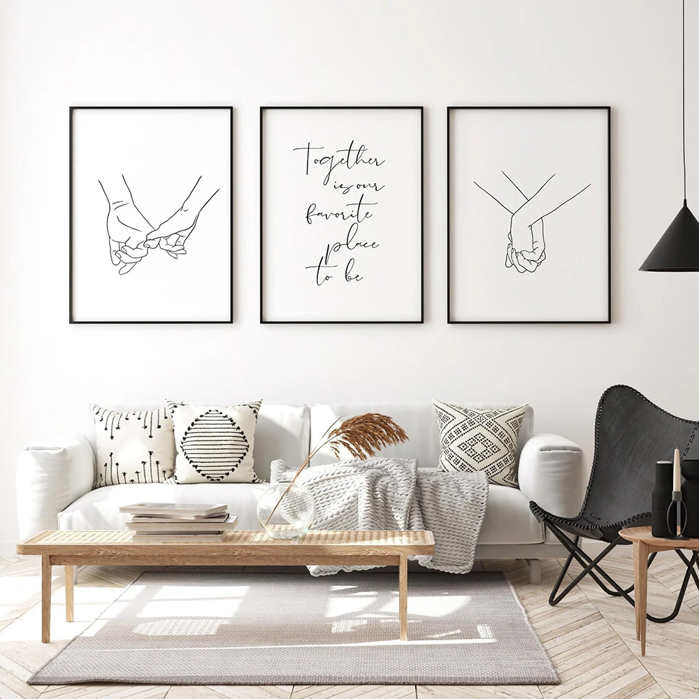 Плакат в скандинавском стиле, черно-белый холщовый принт в виде рук...