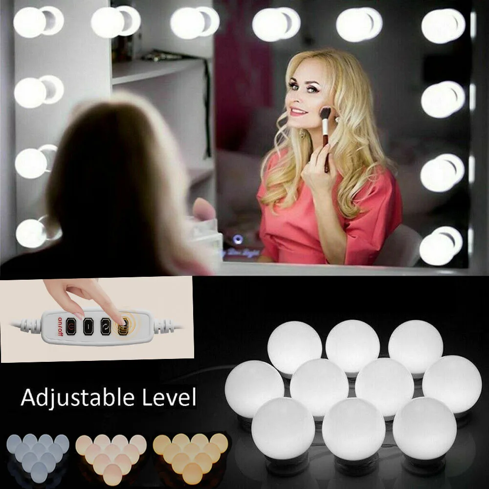 Светодиодный зеркальный светильник для макияжа, лампы USB, голливудский косметический зеркальный светильник s, туалетный столик для ванной, светильник, светодиодный настенный светильник с регулируемой яркостью